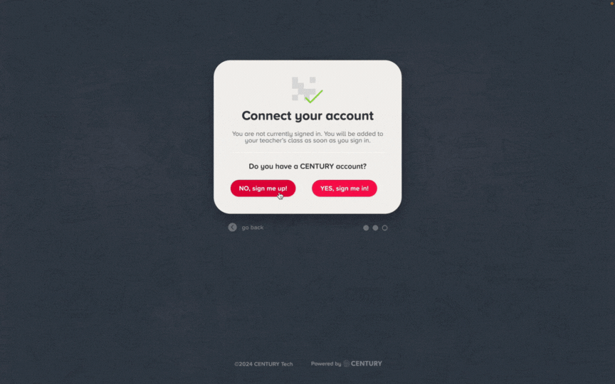 They will then need to choose ‘NO, sign me up!’ if they do not have a CENTURY account or ‘Yes, sign me in’ if they have one from a previous year.